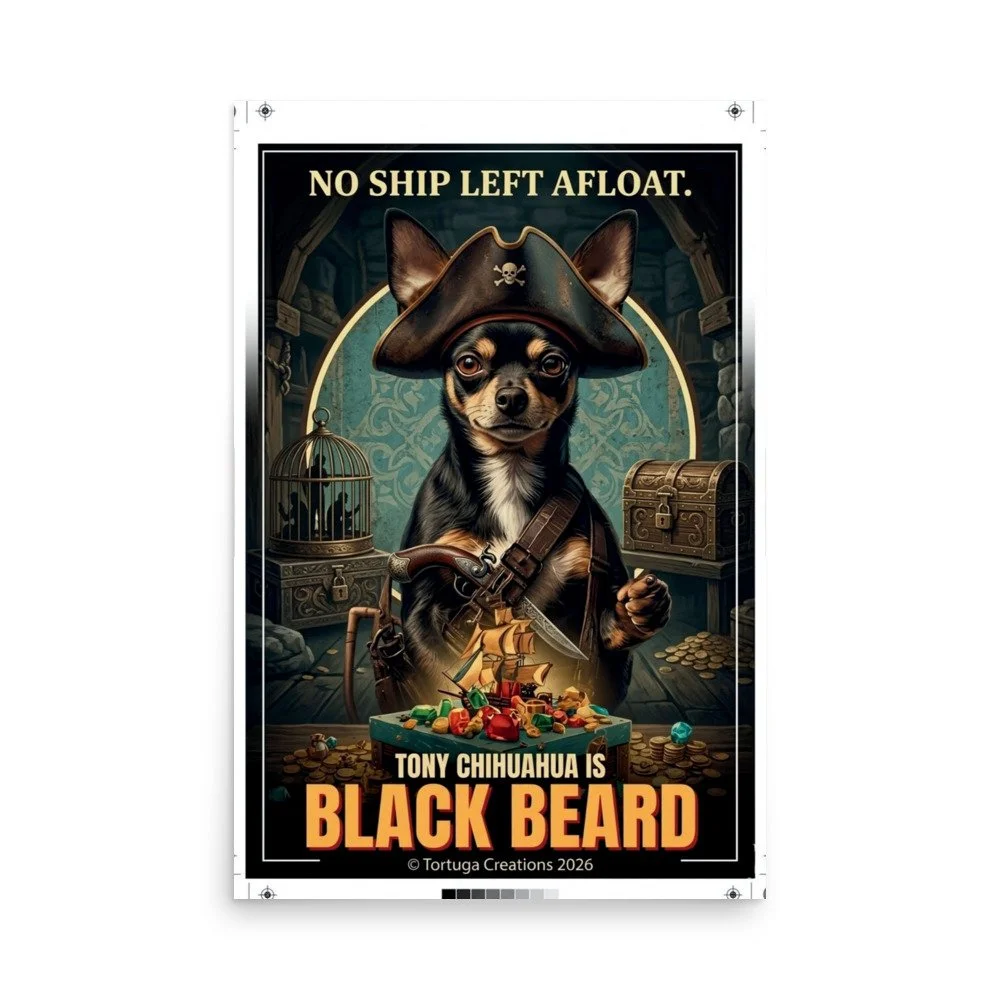 Command attention—and a ton of laughs—in your home, office, or fan cave with this striking 3-poster set of cinematic Chihuahua parodies. Featuring Tony Chihuahua as the swashbuckling "Black Beard," a battle-ready "Rambo," and the ultimate canine kingpin "Scarface," these high-resolution prints capture unforgettable blockbuster energy with a hilarious twist.